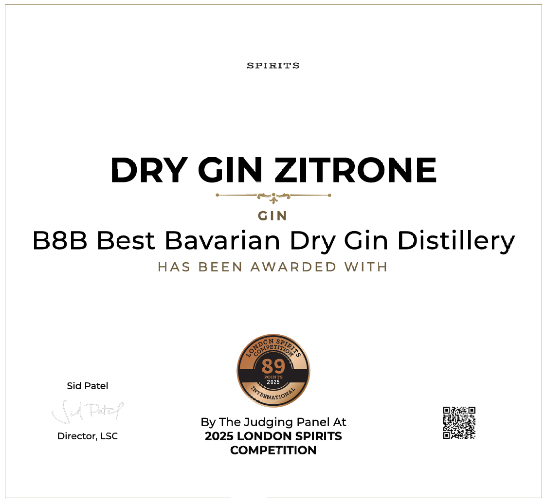 Ausgezeichnet mit Bronze bei den London Spirits Competition – einem der renommiertesten internationalen Wettbewerbe, bei dem nicht nur Qualität und Handwerkskunst, sondern auch Design und Marktfähigkeit bewertet werden. Eine Auszeichnung, die den besonderen Charakter unseres Zitronen Gins eindrucksvoll bestätigt.